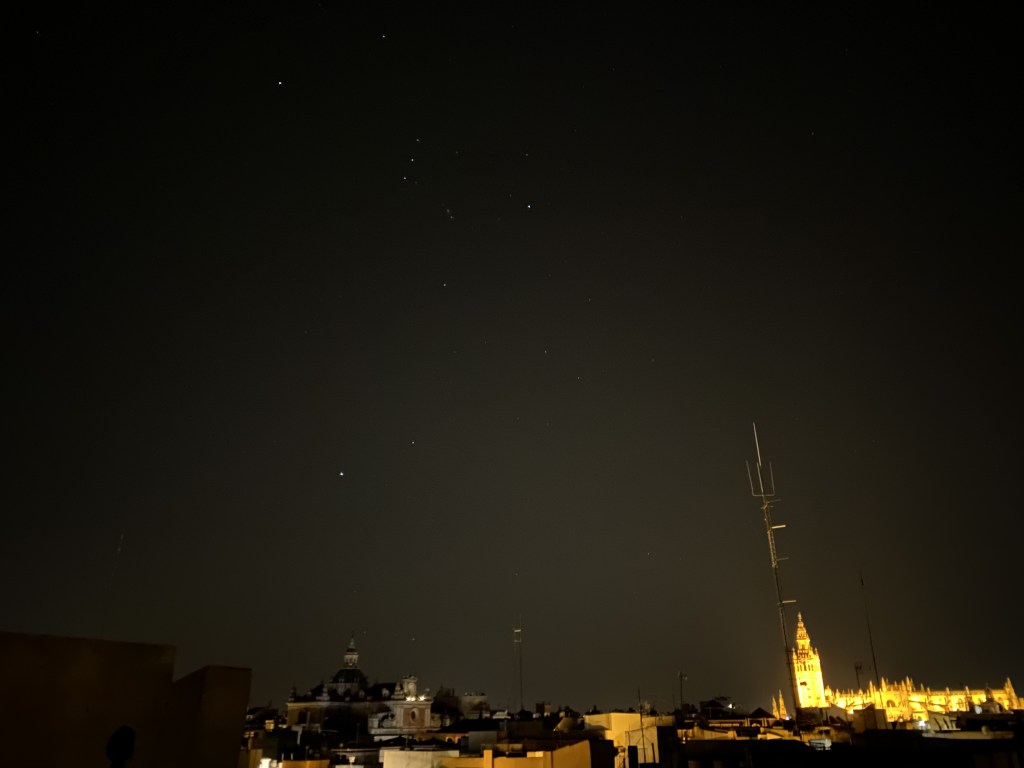 At night, beside the occasionally backup horn from a work truck or the street cleaner, you can hear laughs and chants from nearby bars, you can appreciate the stars from the lovely terrace, or sip on some vino tinto while listening to some Paco de Lucia, or Bad Bunny. Dealers choice.